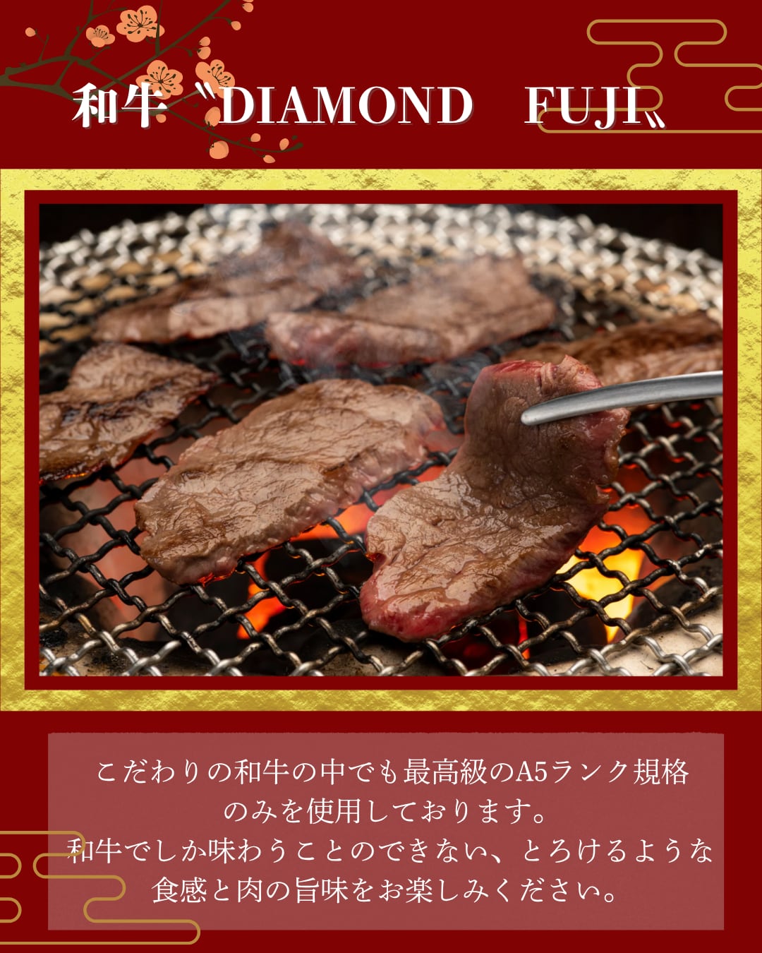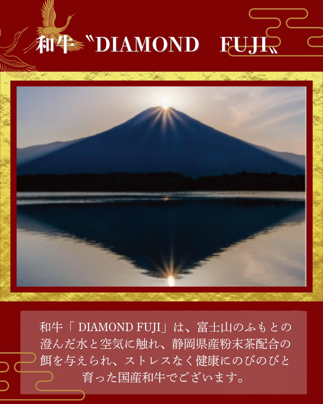 「WAGYU DIAMOND FUJI」は富士山のふもとの澄んだ水と空気に触れながら、のびのびと健康に育った牛のみを出荷し、本商品で最上級のA5ランク規格のみを使用しております。