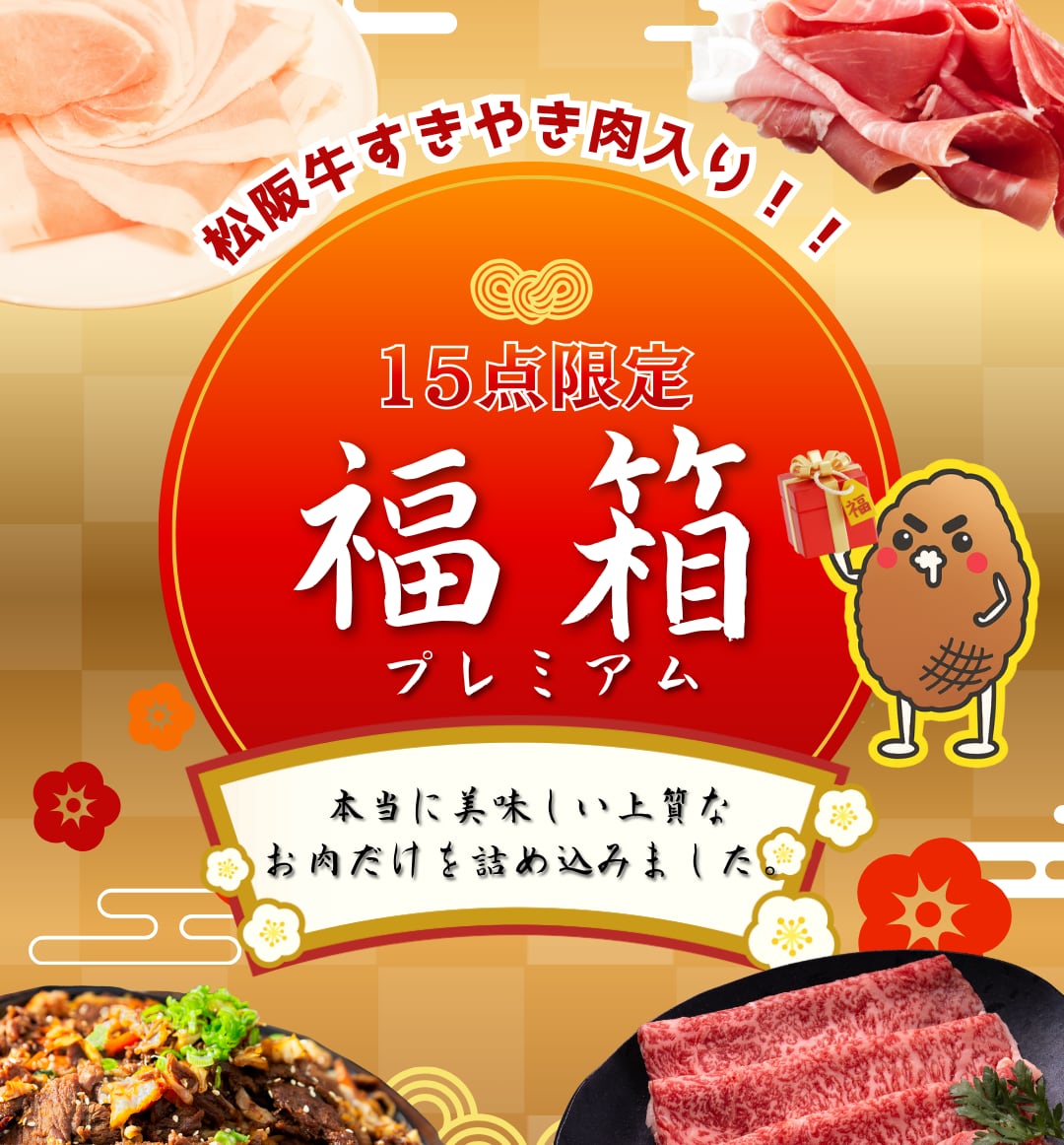 毎度大好評のすぎもとミートの「肉の福袋」から今回、〝A5ランク松阪牛のすき焼き肉〟入りの豪華な福箱が数量限定で登場!!