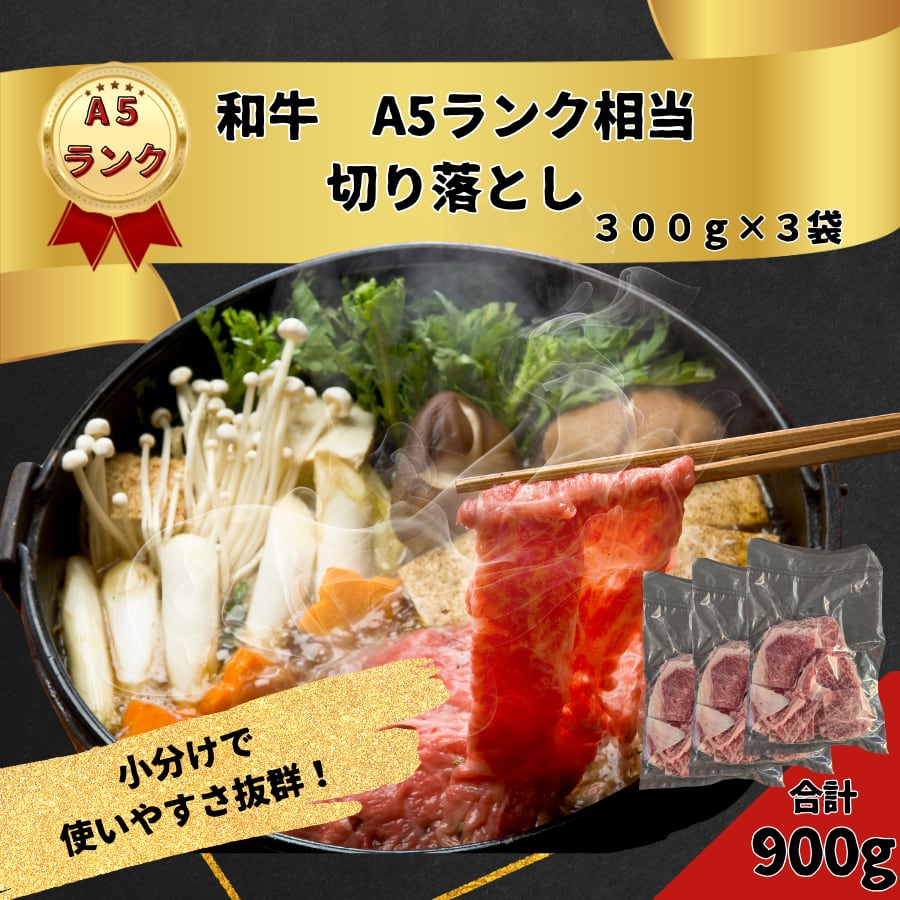 和牛切り落とし 900g A5ランク相当 冷凍 300g×3袋 ※部位、赤身/霜降り量の指定不可