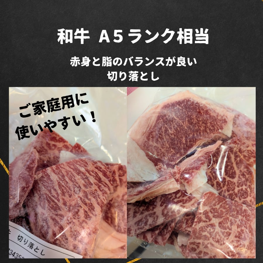 A5ランク相当の和牛を使用した、家庭用に使いやすい切り落としです。